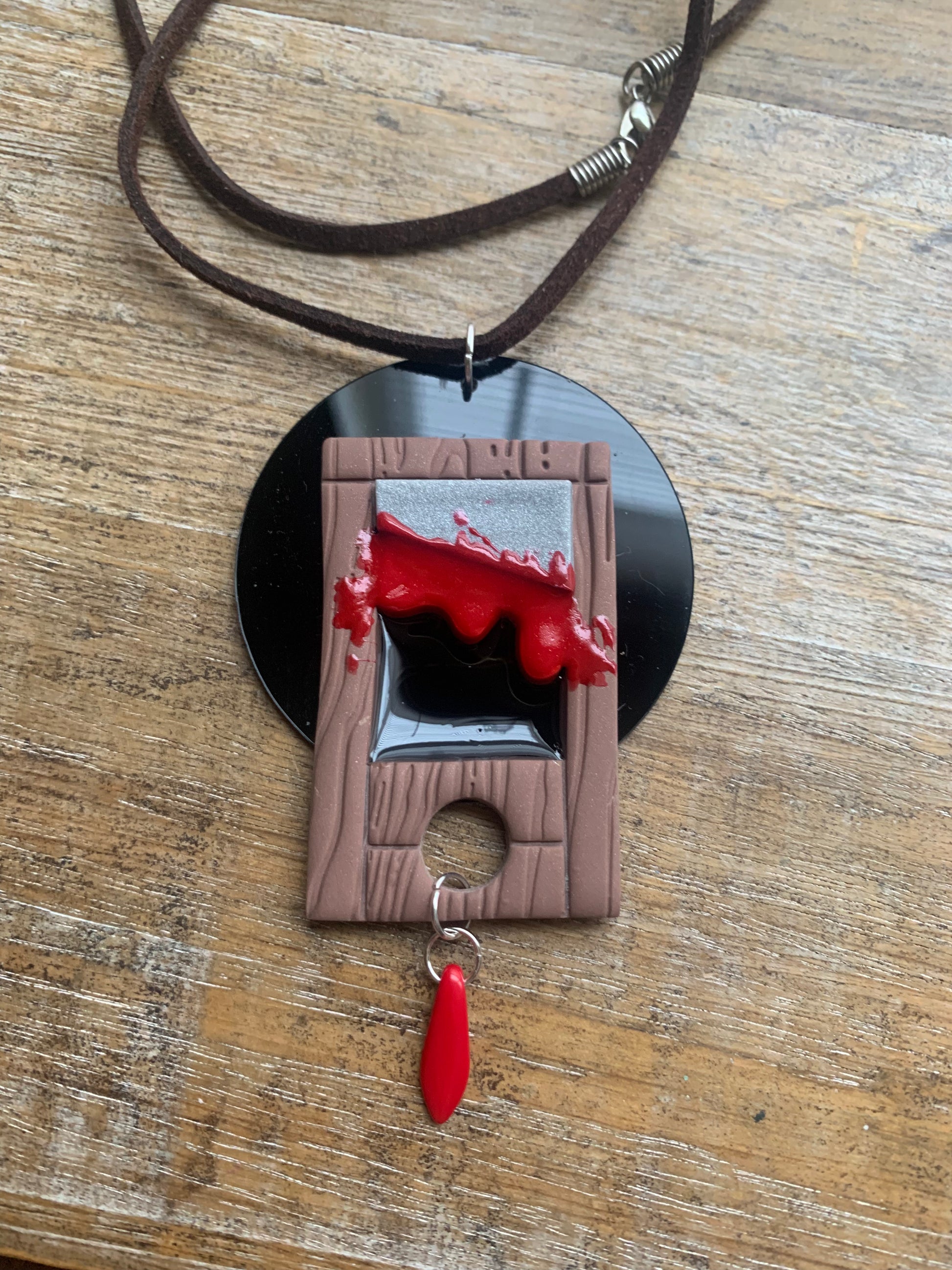 Bloody Guillotine Eat the Rich Leftist Cord Necklace