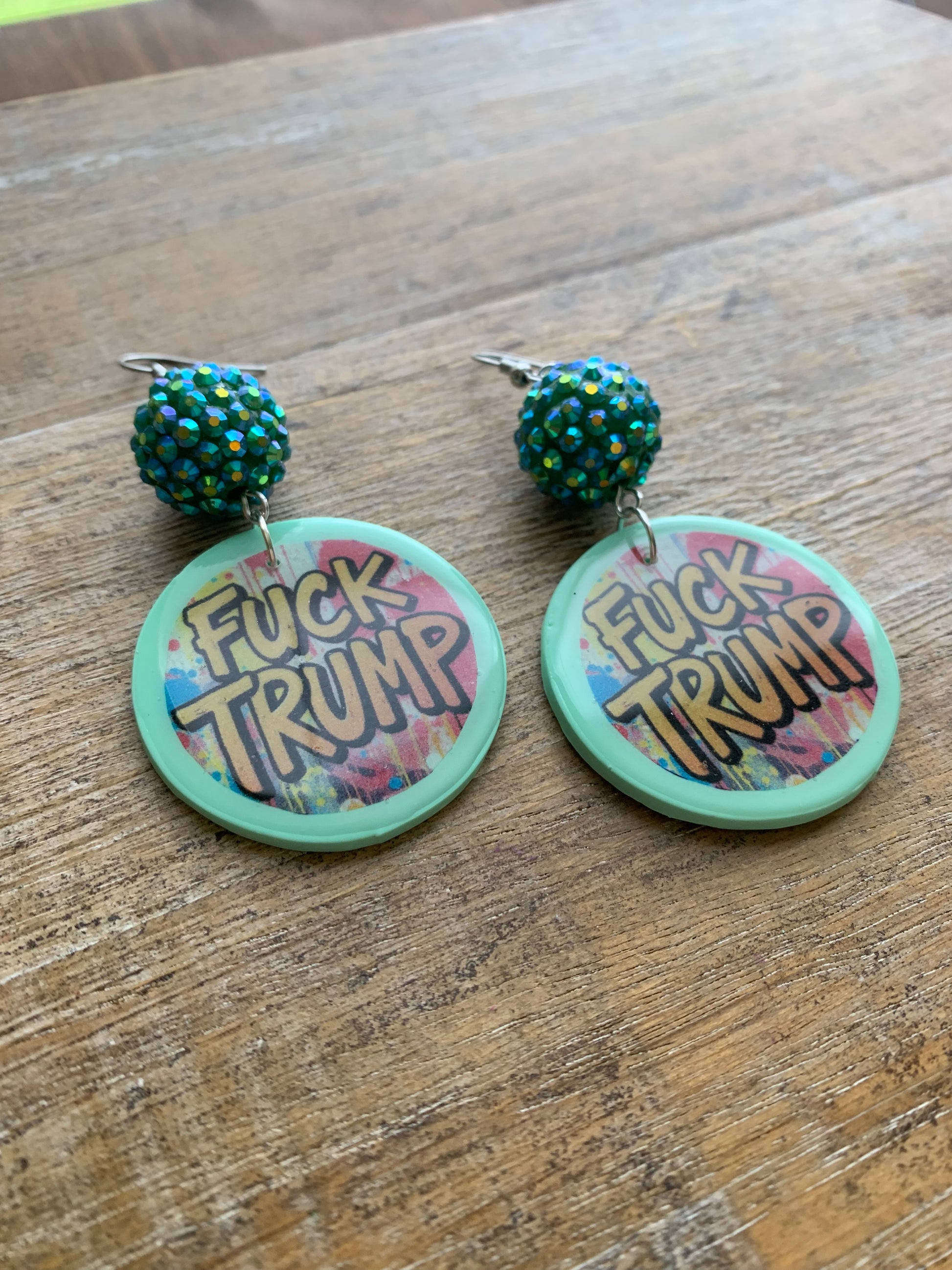 Fuck Trump Clay Protest Activist Earrings Liberal Clip On Earrings Punk Graffiti FDT Ear Hangers