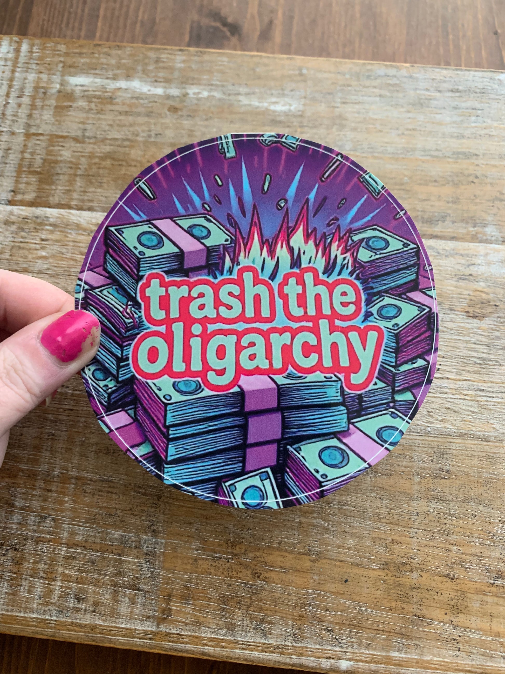 Trash the Oligarchy Eat the Rich Money 4x4 Round Bumper Sticker