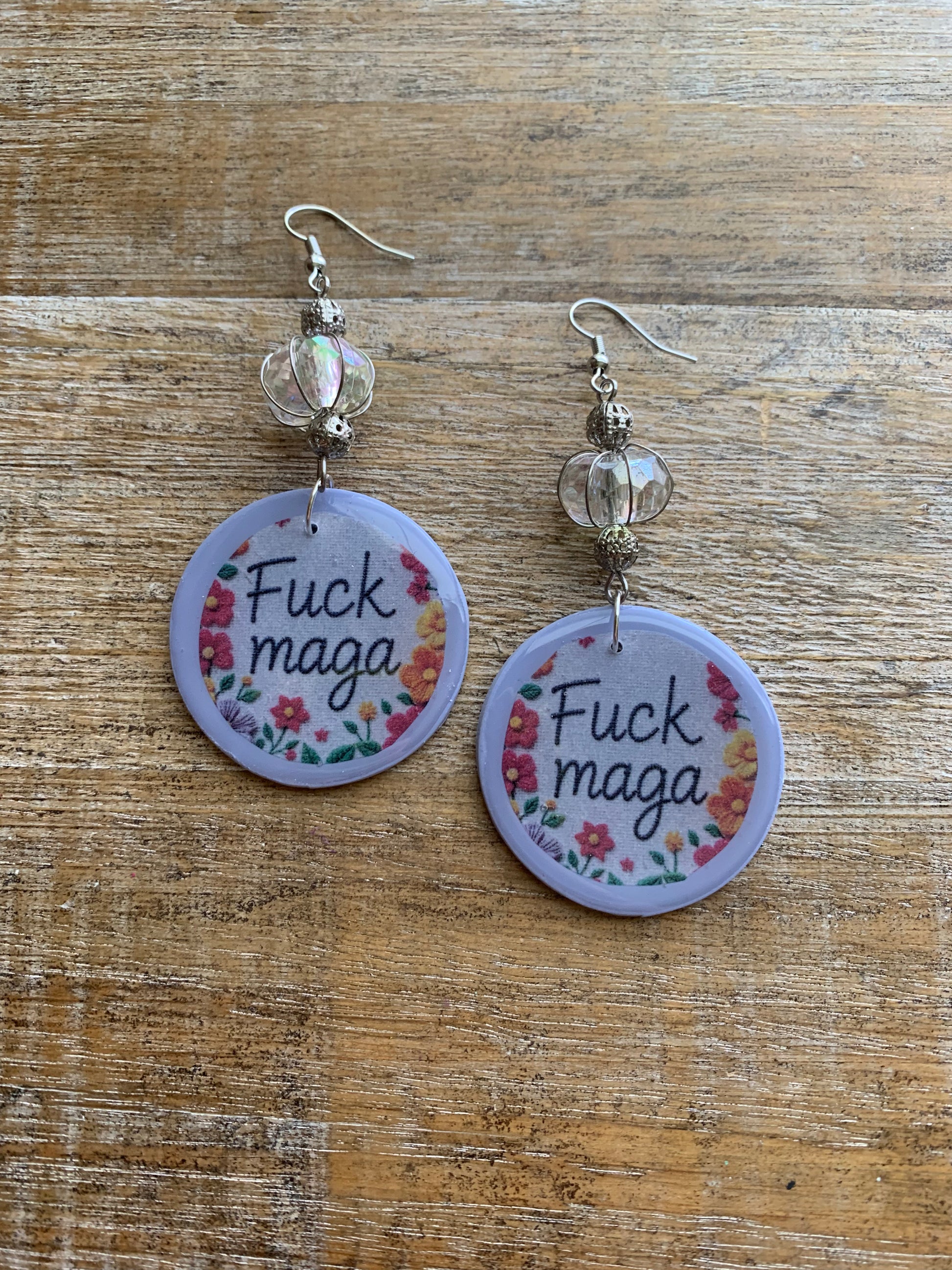 As-Is Fuck MAGA Clay Protest Activist Earrings Liberal Clip On Earrings Cute Lavender Ear Hangers