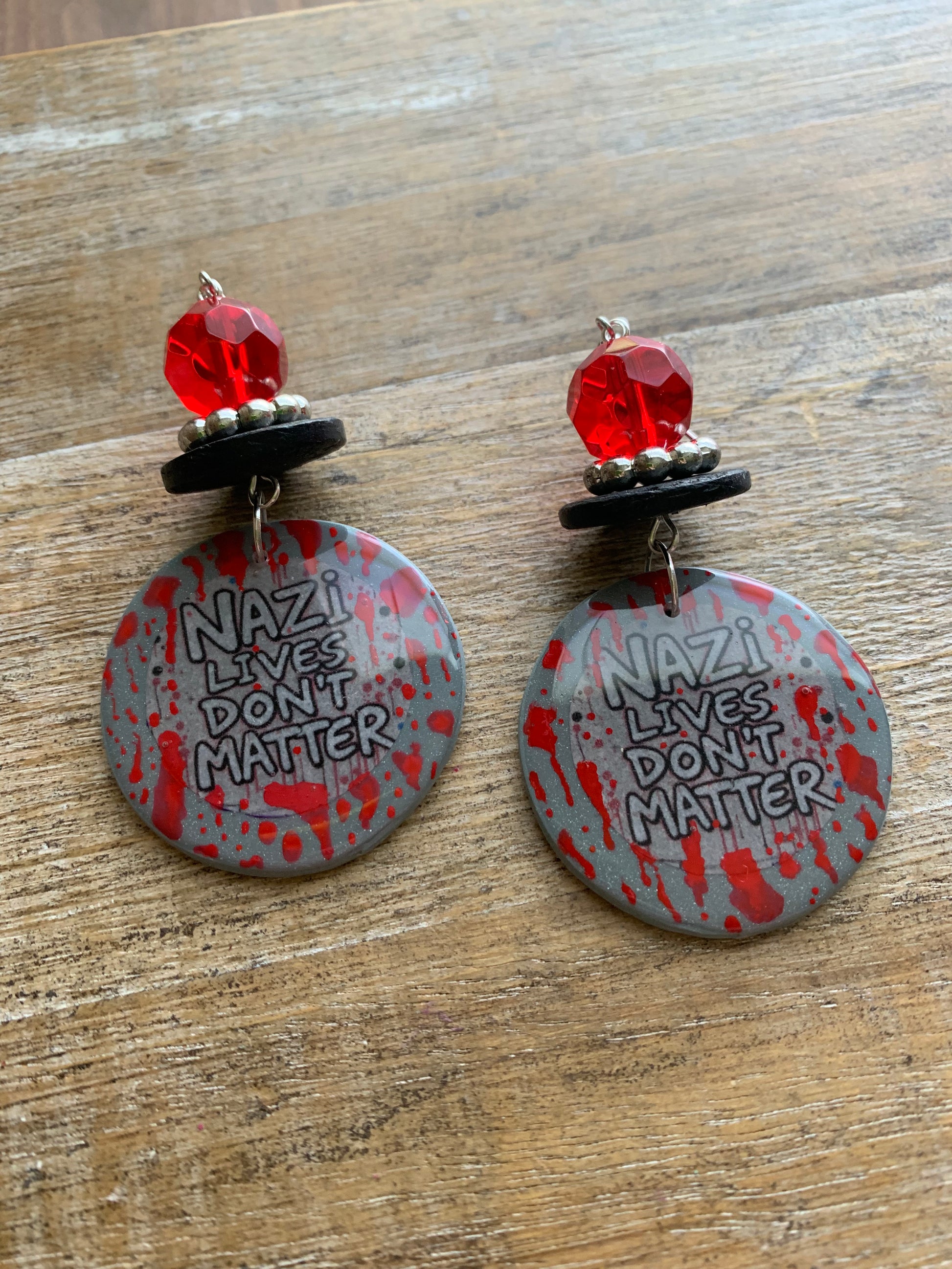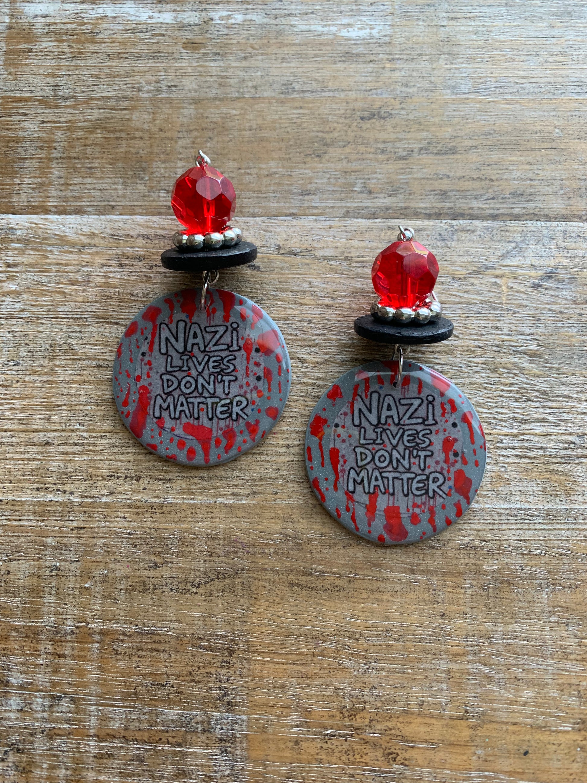 Nazi Lives Don’t Matter Clay Protest Activist Earrings Liberal Clip On Earrings Punk Bloody Gothic Ear Hangers