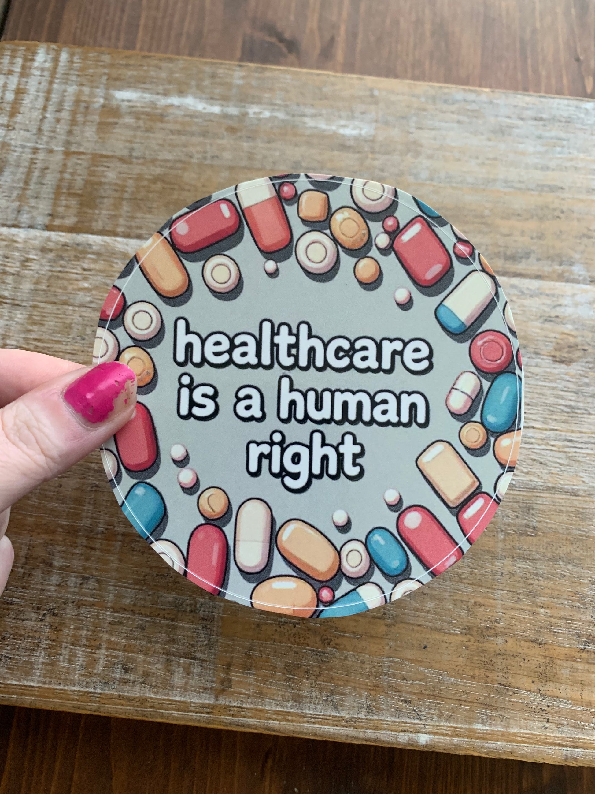 Healthcare is a Human Right Affordable Healthcare for All 4x4 Round Bumper Sticker