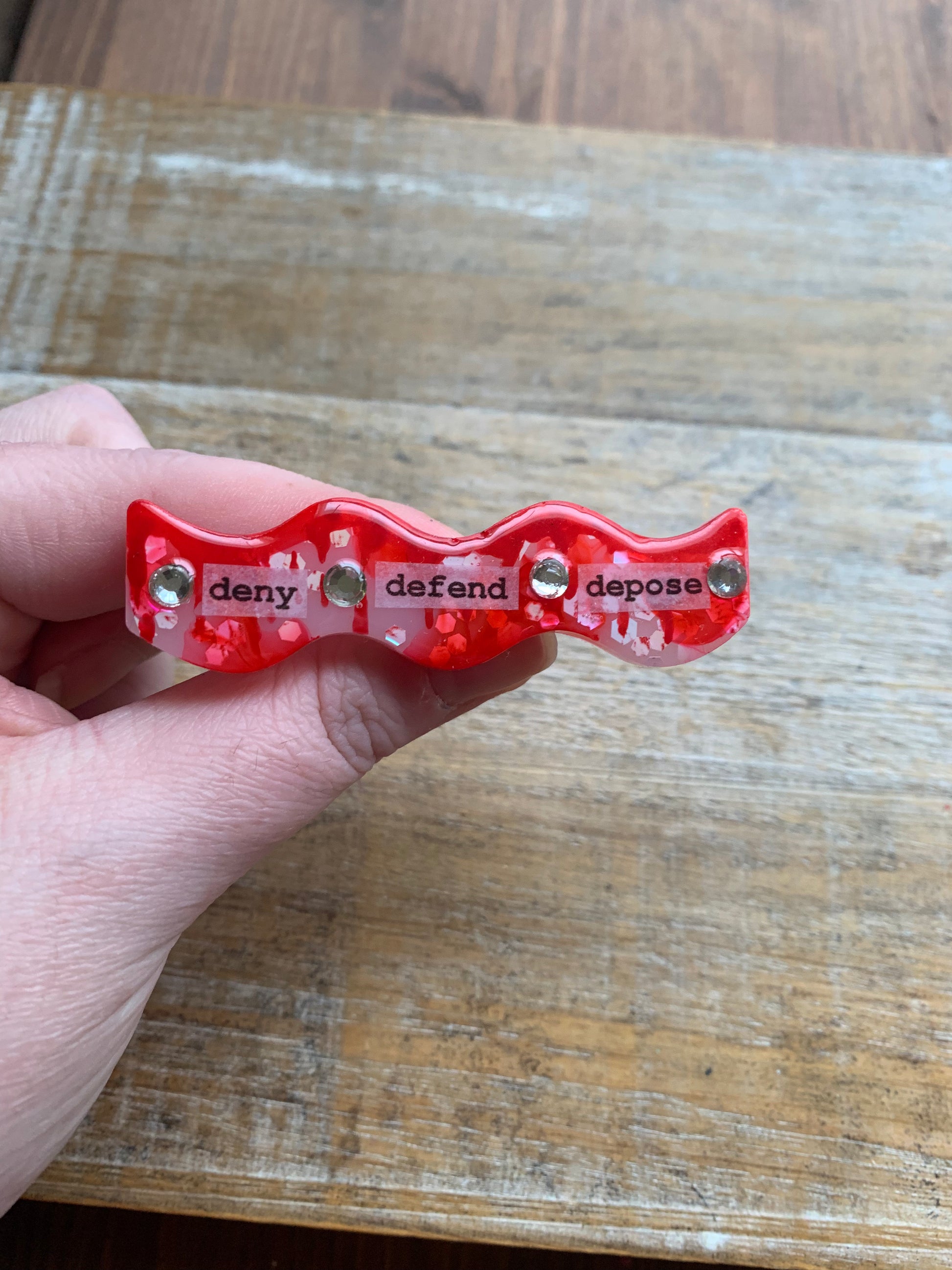 Deny Defend Depose Painted Resin Pin Bloody Luigi Gothic Glitter Brooch