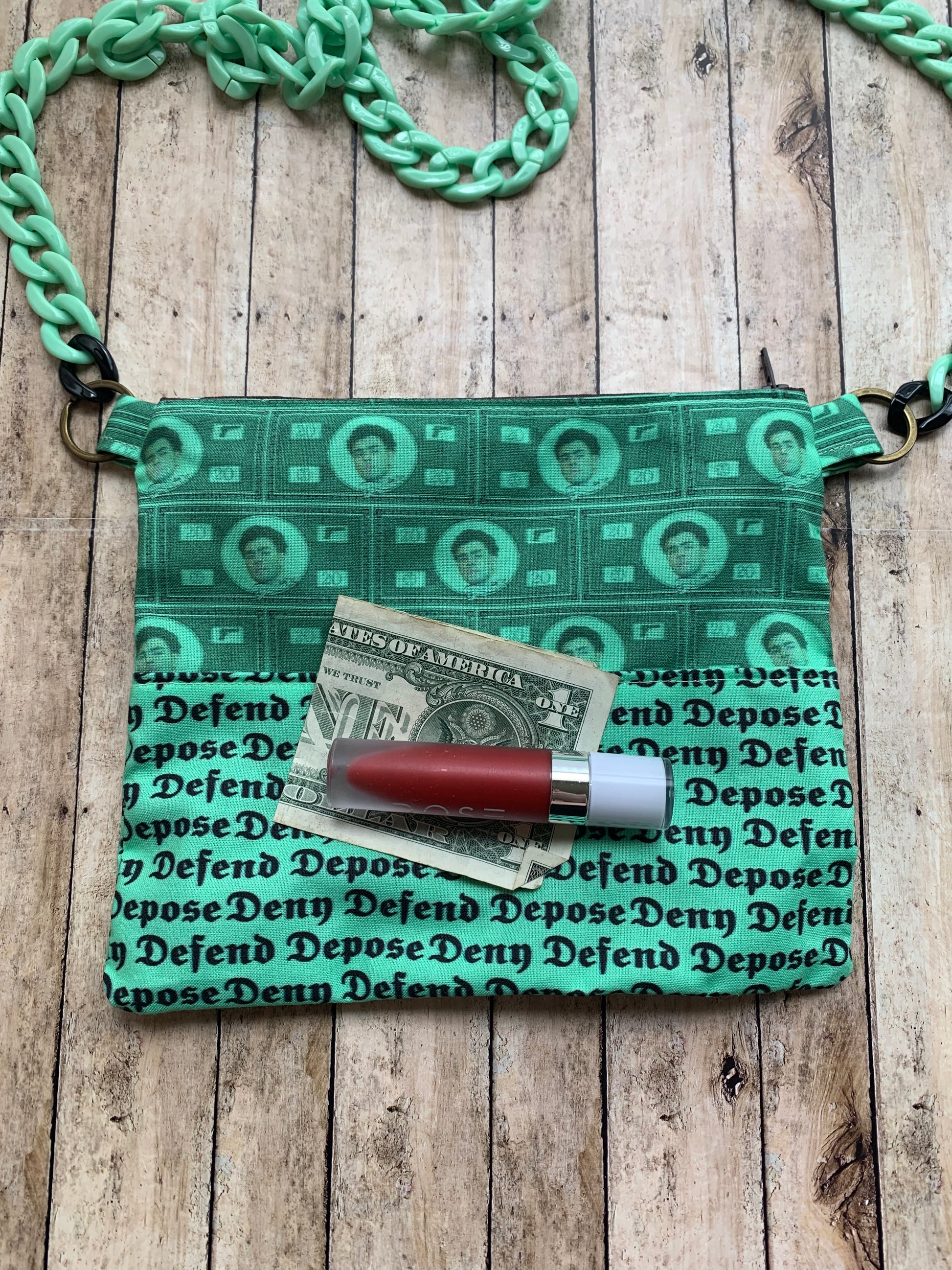 Deny Defend Depose Luigi Green Liberal Crossbody Purse Light Cotton Pouch Bag Universal Healthcare Democrat Money Mint Green Pastel Crossbody Bag