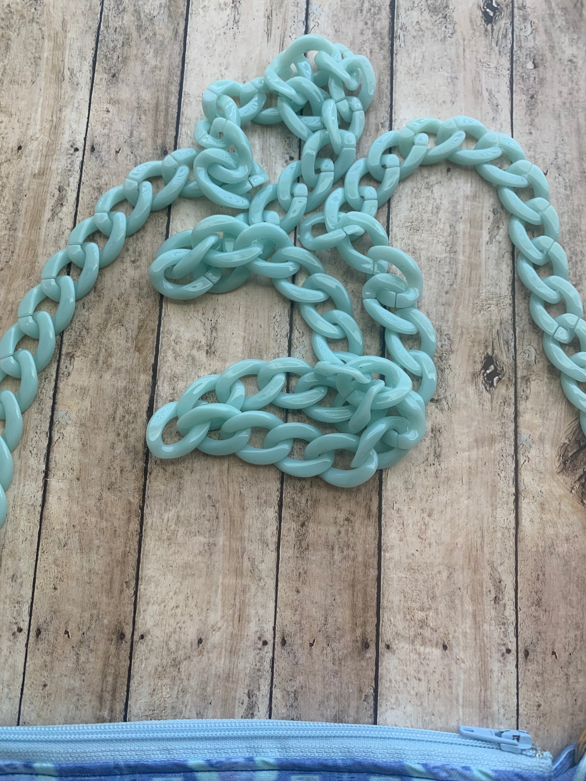 This would be a cute fabric purse to wear while galavanting around 💖 this is a super lightweight purse, the acrylic chain is all of the weight.