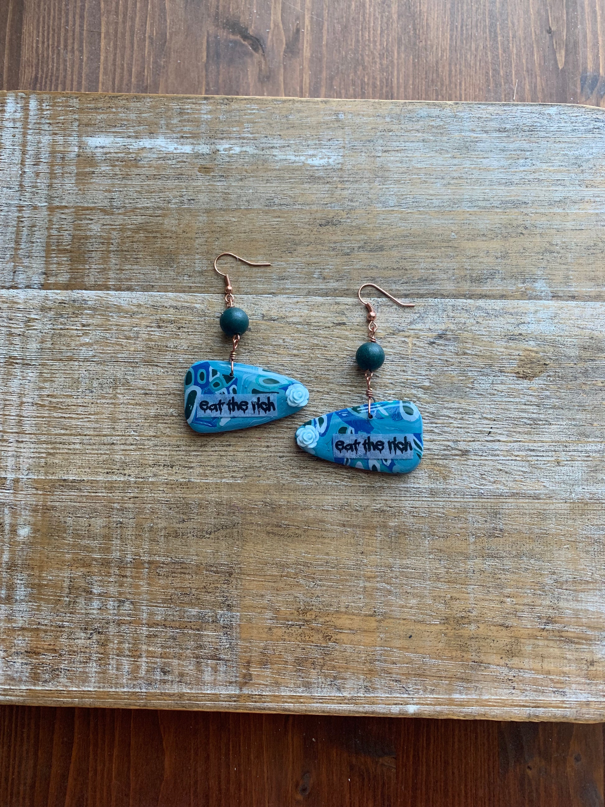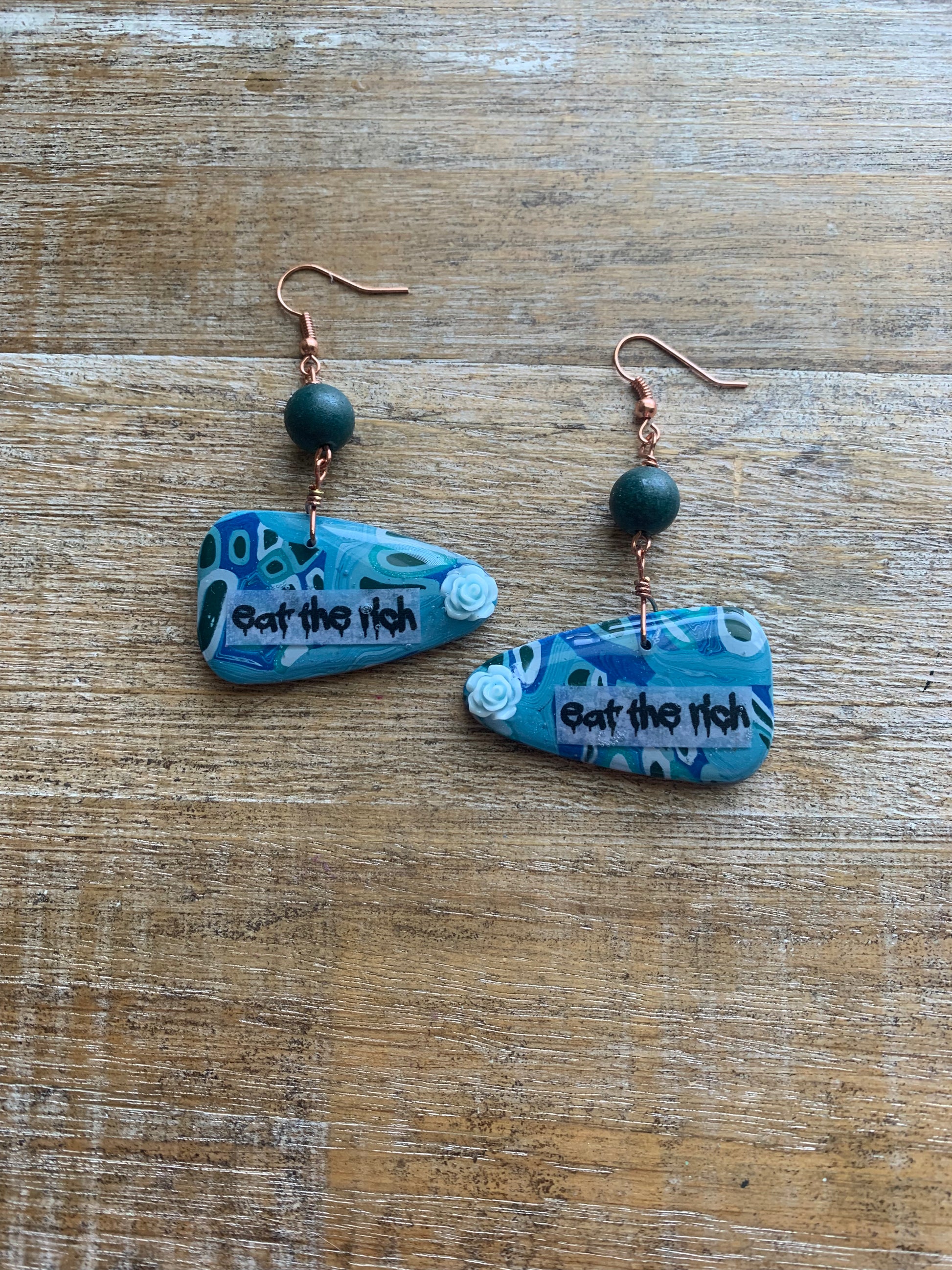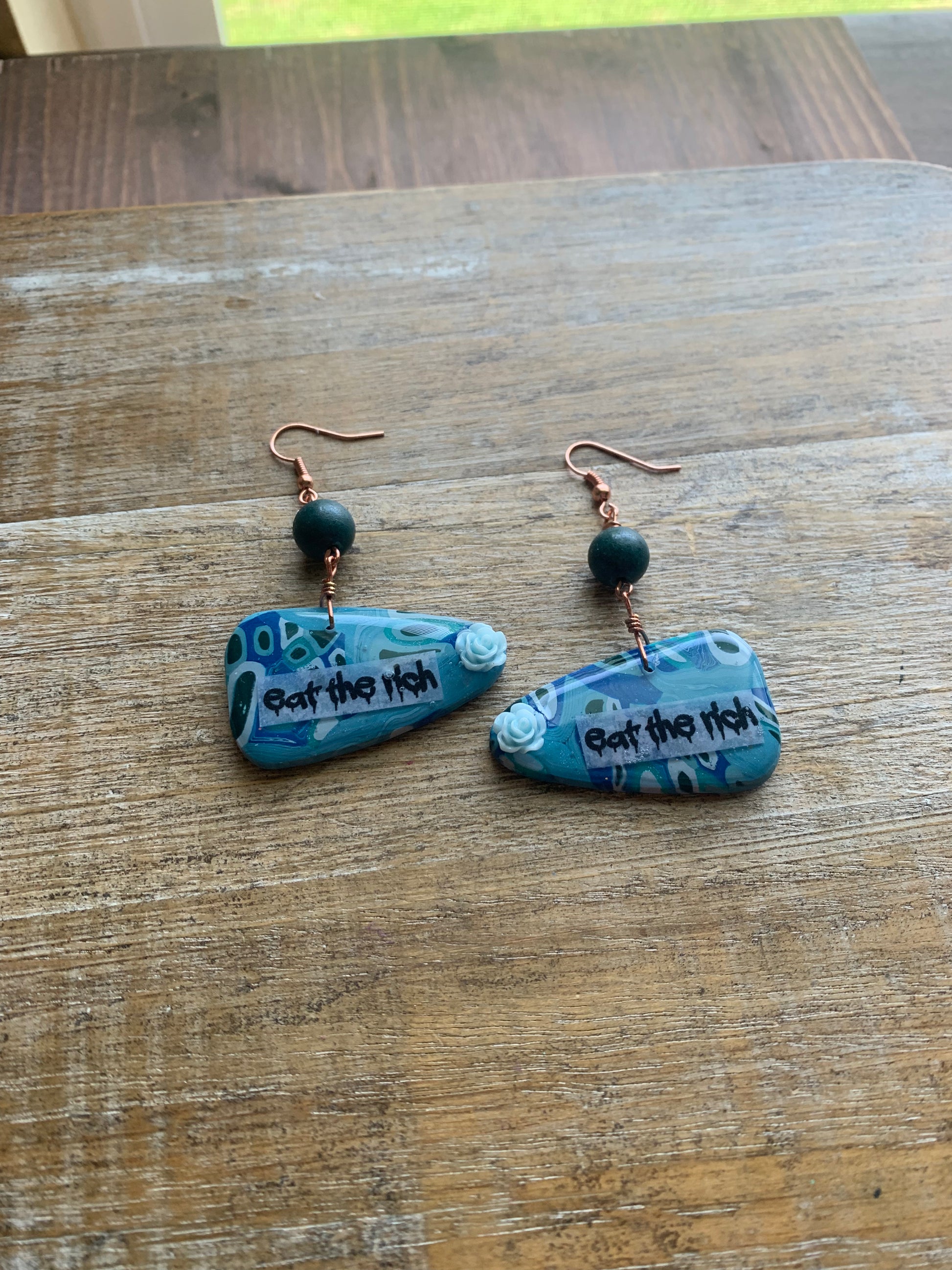 Eat The Rich Blue Rose Art Deco Polymer Clay Earrings
