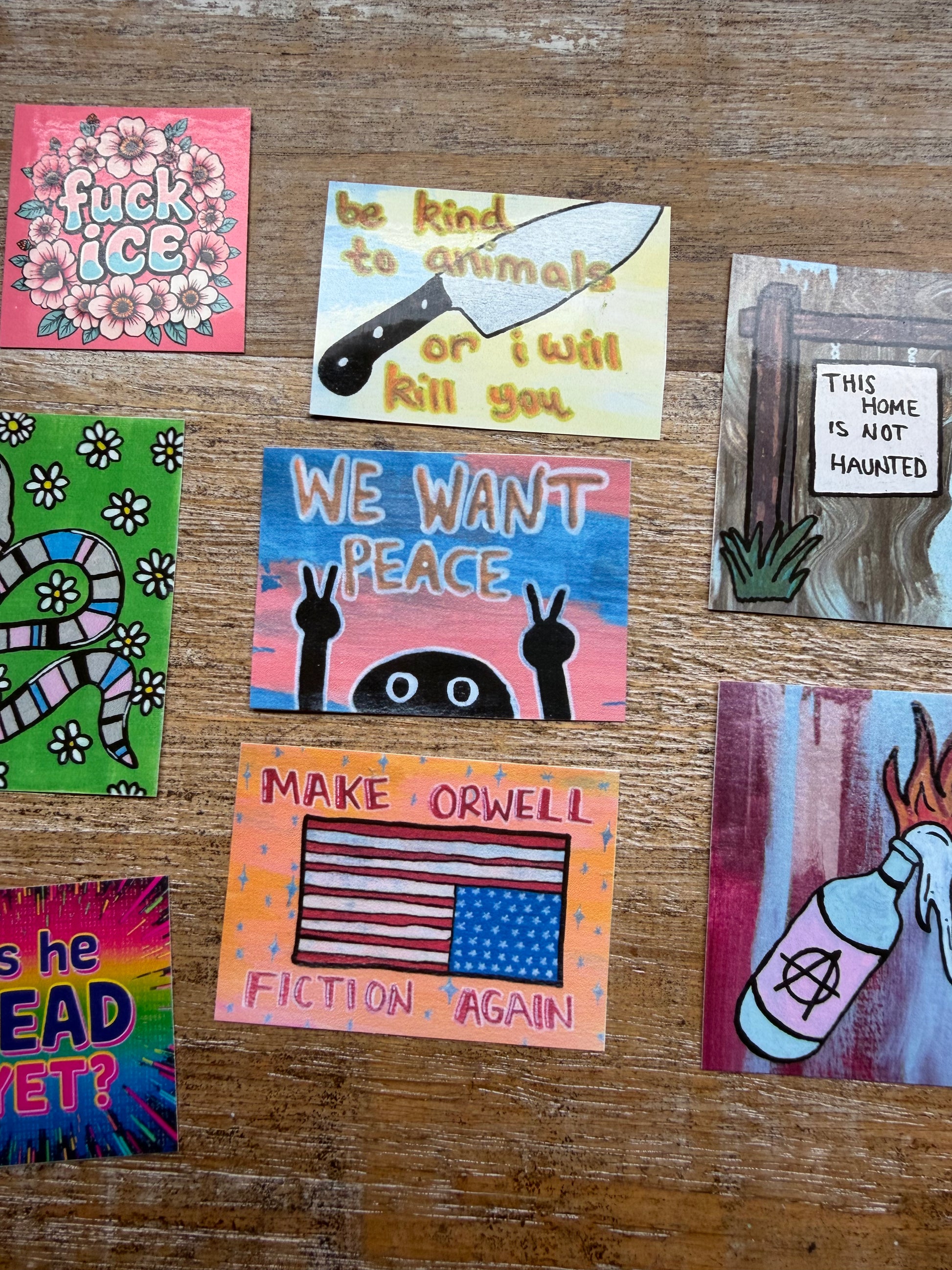 Art is hand painted by me—they were ACEOs and I wanted to make stickers out of some of my favorites! These stickers stick really well!