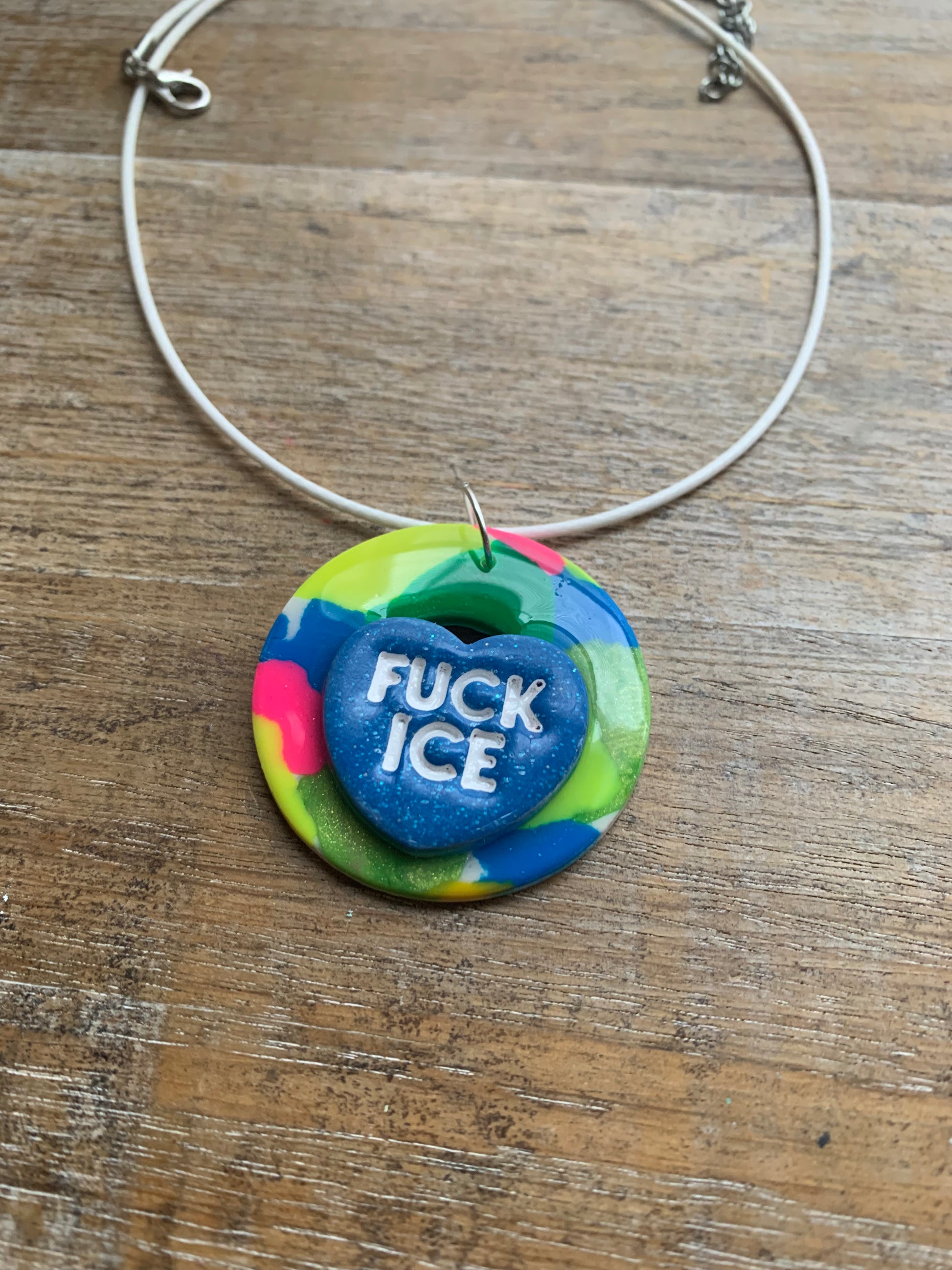 Fuck Ice Neon Terrazzo Heart Clay Corded Protest Necklace