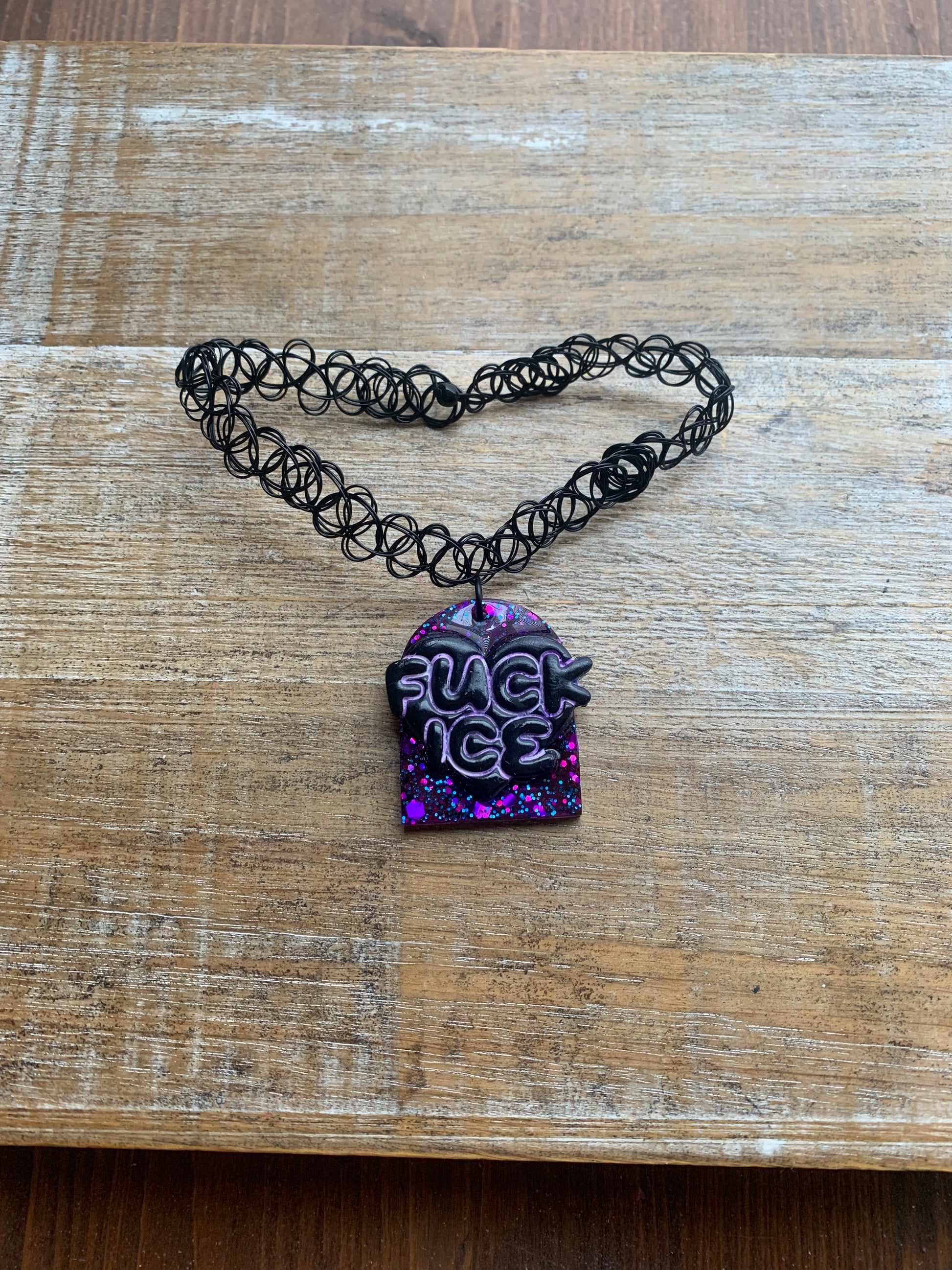 Fuck Ice Purple & Black Resin Clay Gothic Choker Tattoo Protest Necklace