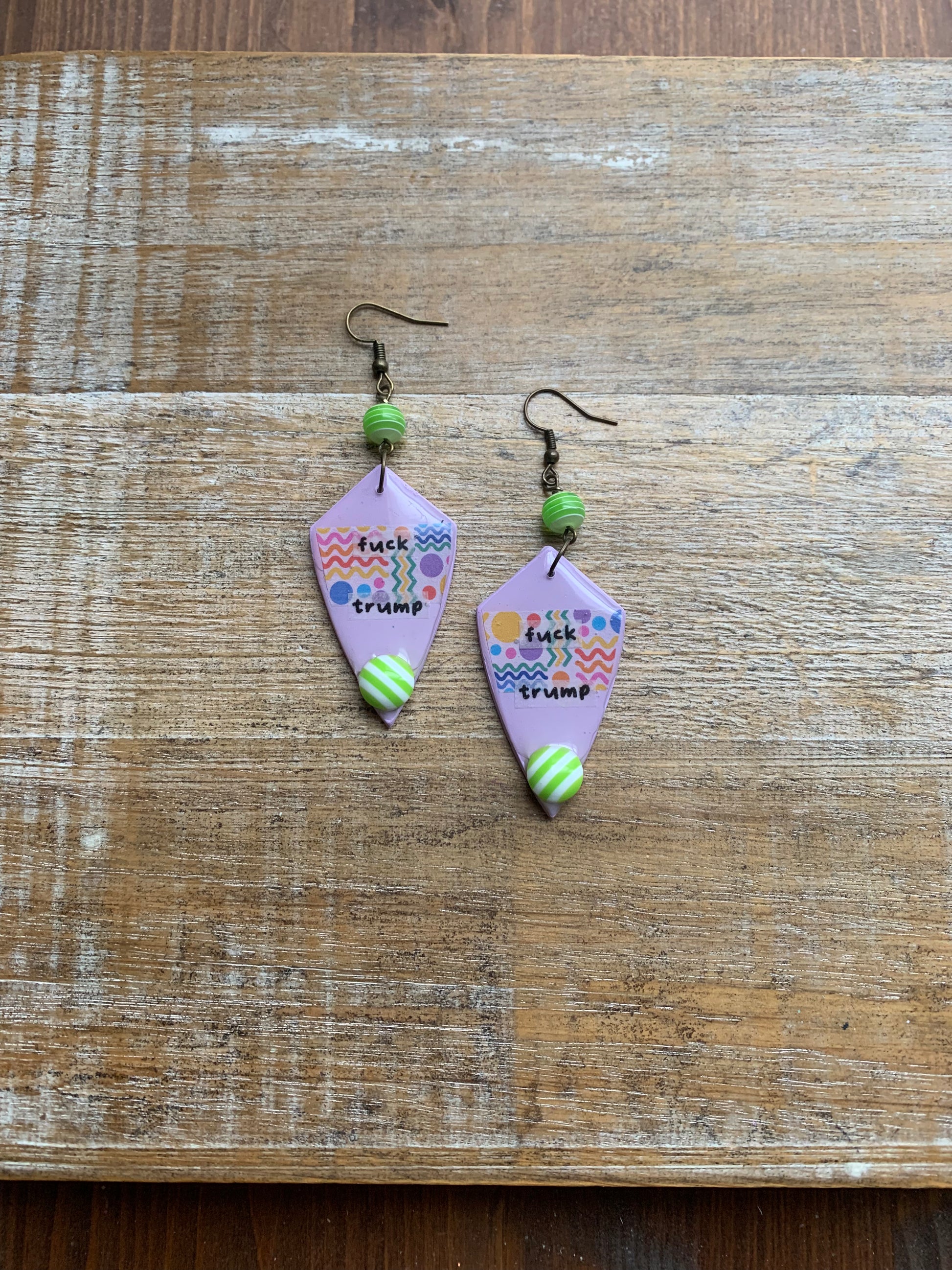 Fuck Trump Clay Protest Activist Earrings Liberal Clip On Earrings Purple Retro FDT Ear Hangers