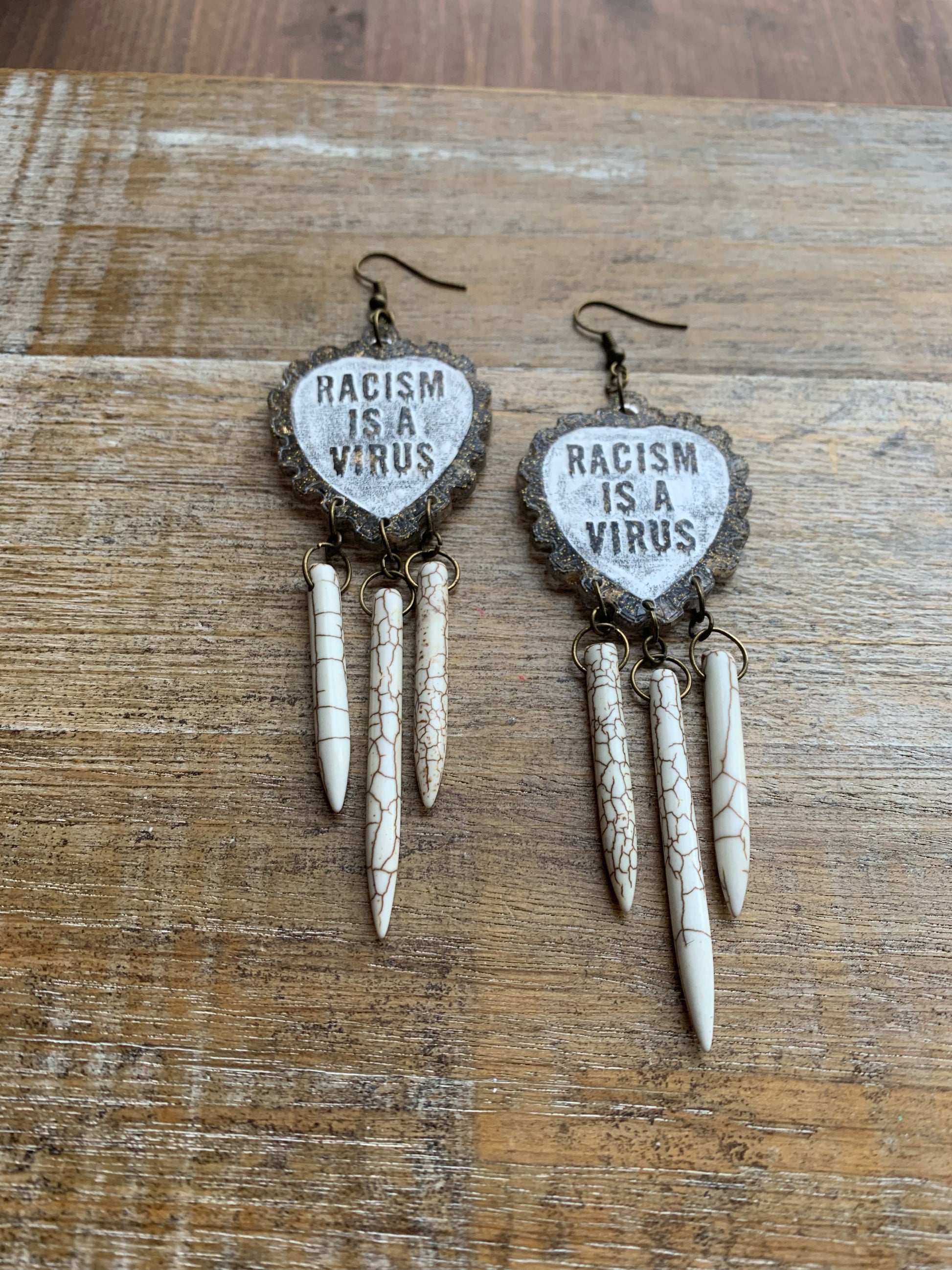 handmade racism is a virus earrings!