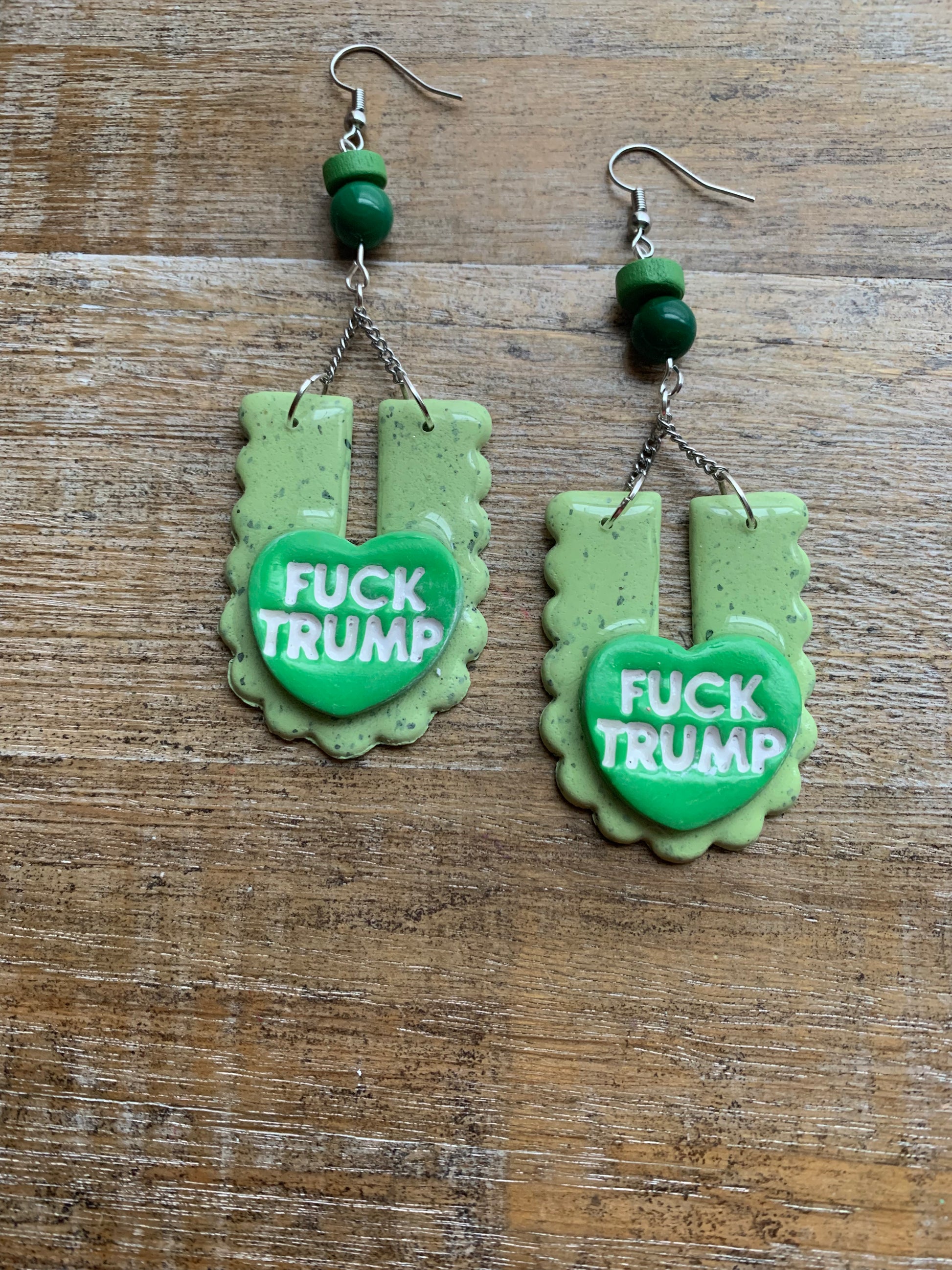 handmade fuck trump earrings! One of a kind!