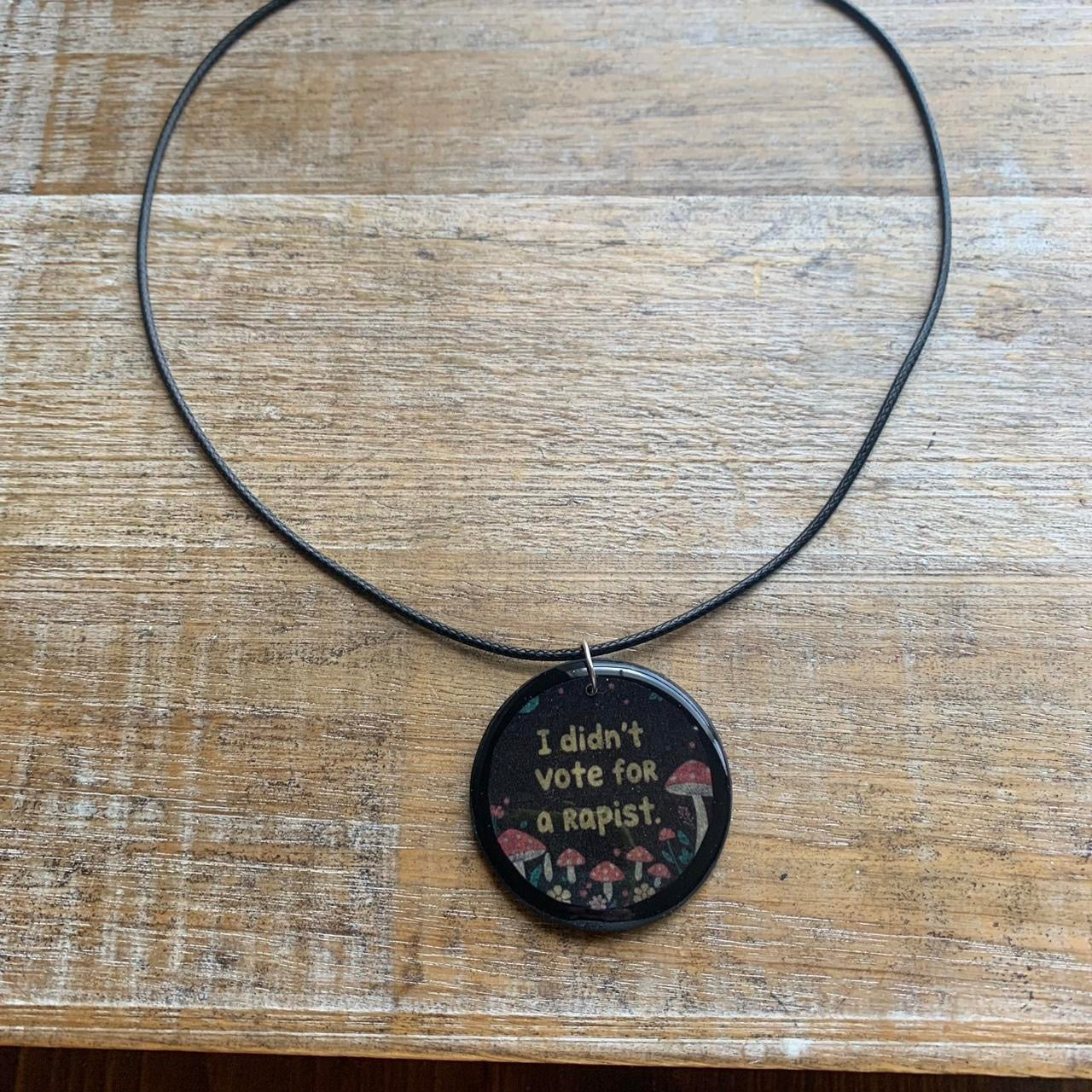 I Didn’t Vote for a Rapist Gothic Black & White Mushroom Cord Necklace