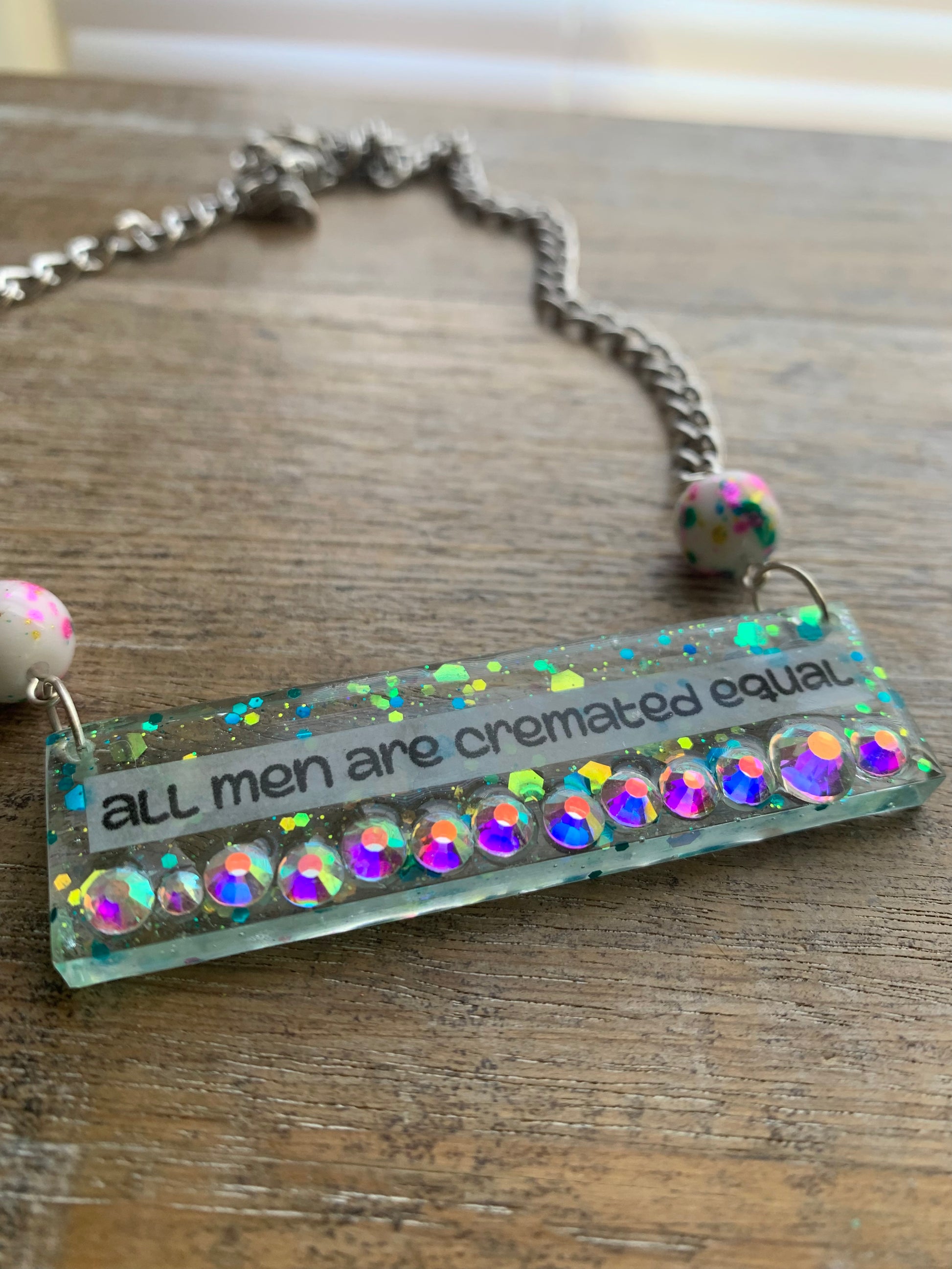One of a kind “all men are cremated equal” necklace.