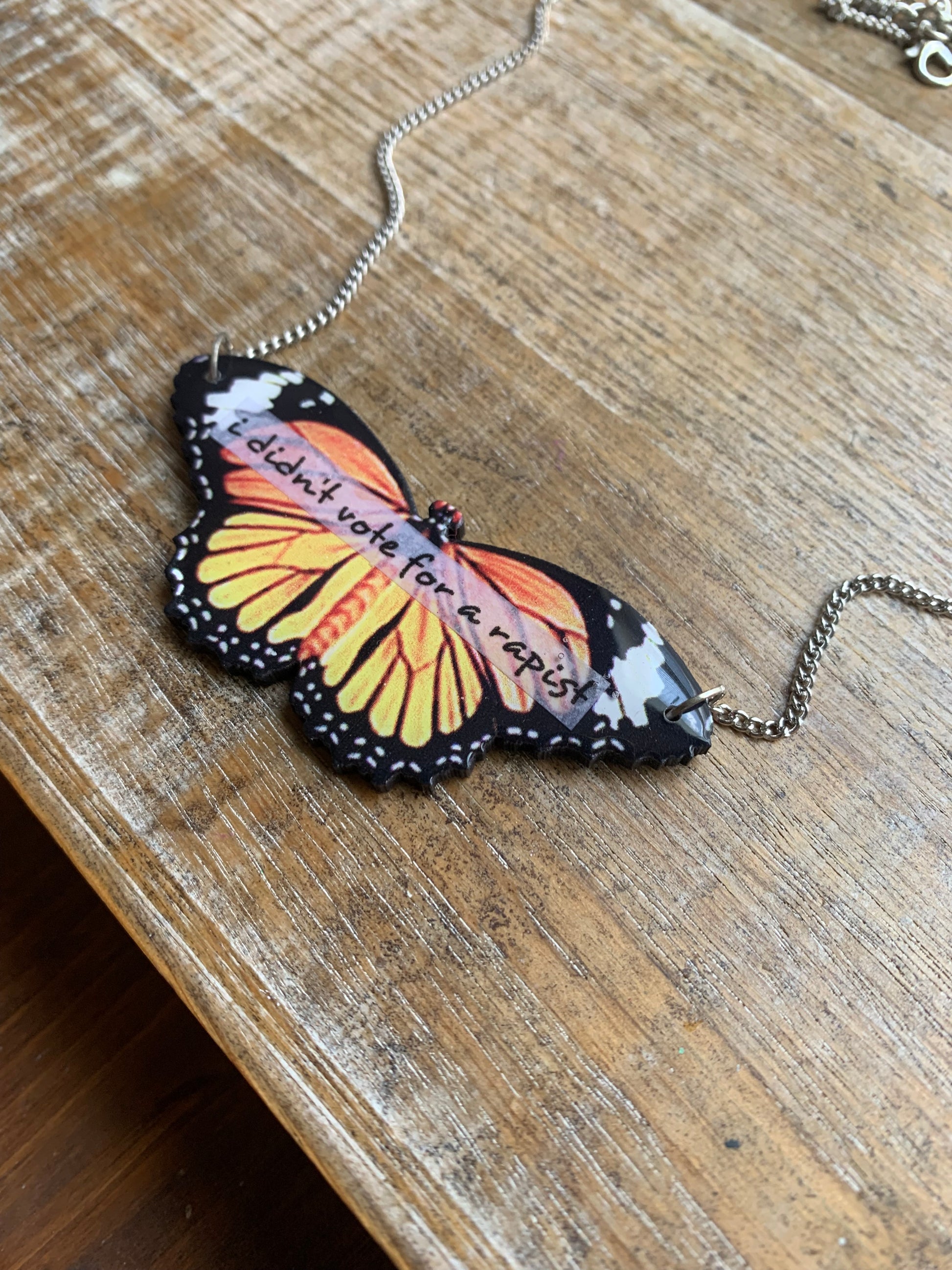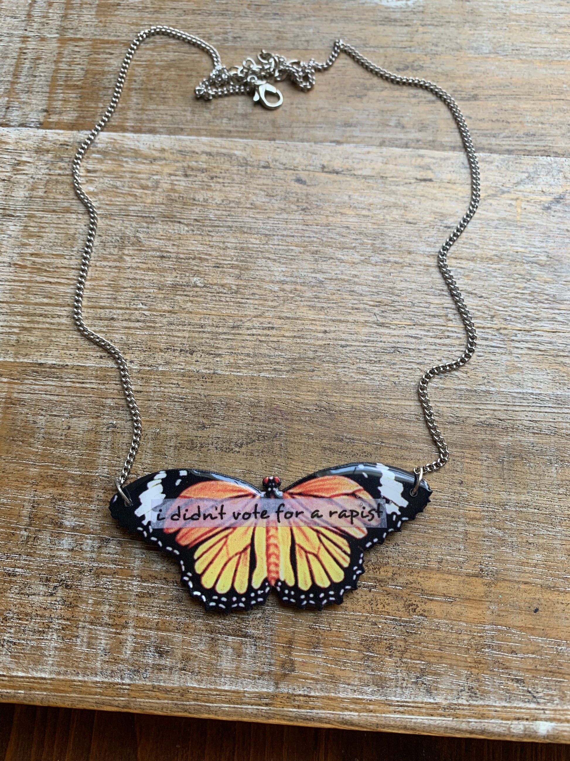 I Didn’t Vote for a Rapist Necklace Monarch Butterfly Gothic Racism Liberal Democrat Necklace Anti Trump Bronze Chain Anti Racism Necklace