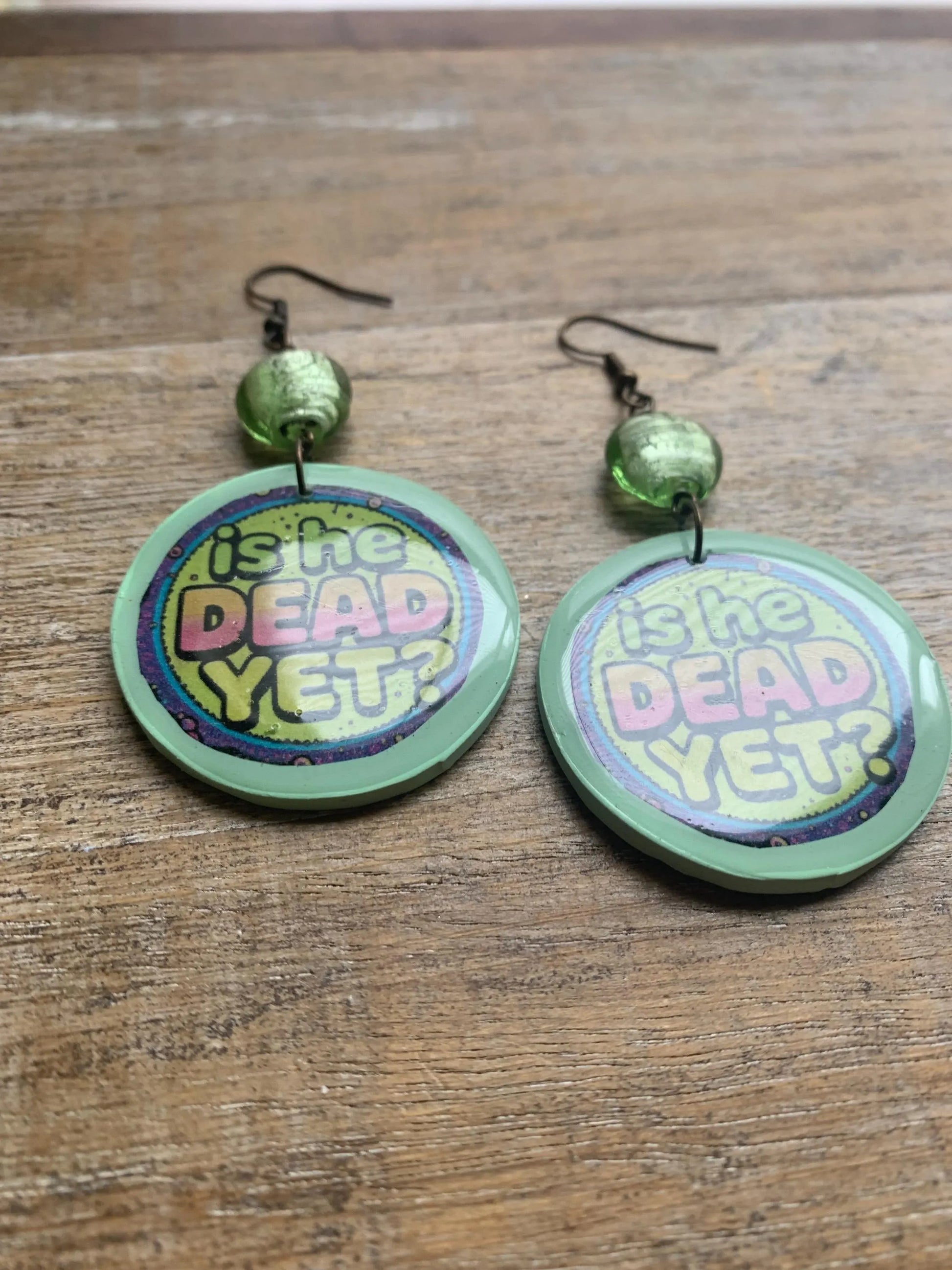 Is He Dead Yet Earrings Clay Protest Liberal Democrat Activist Funny Retro Flowers Clip On Earrings Green Millennial Govt Ear Hangers