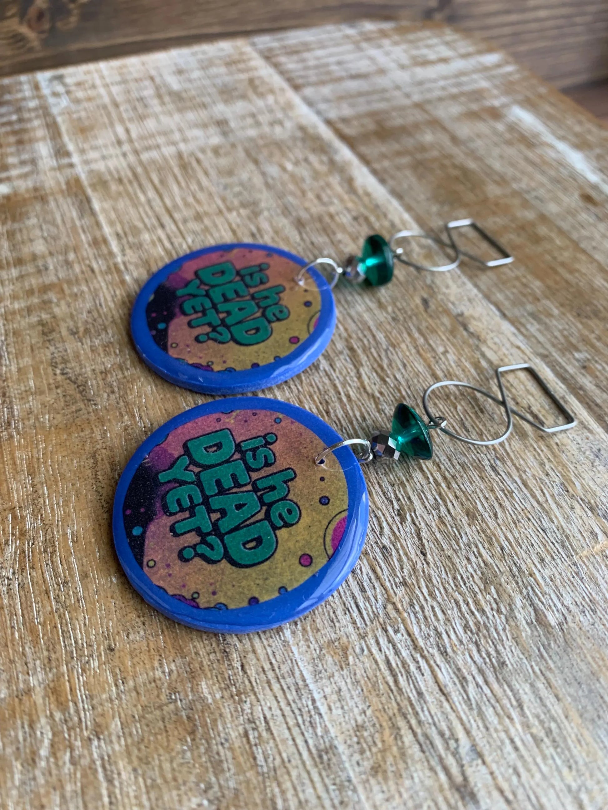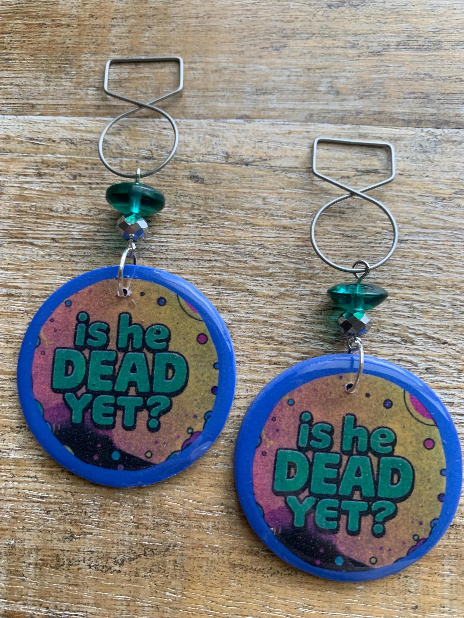 Is He Dead Yet Tunnel Gauge Earrings Clay Protest Liberal Democrat Activist Funny Retro Teal Clip On Earrings Blue Millennial Govt