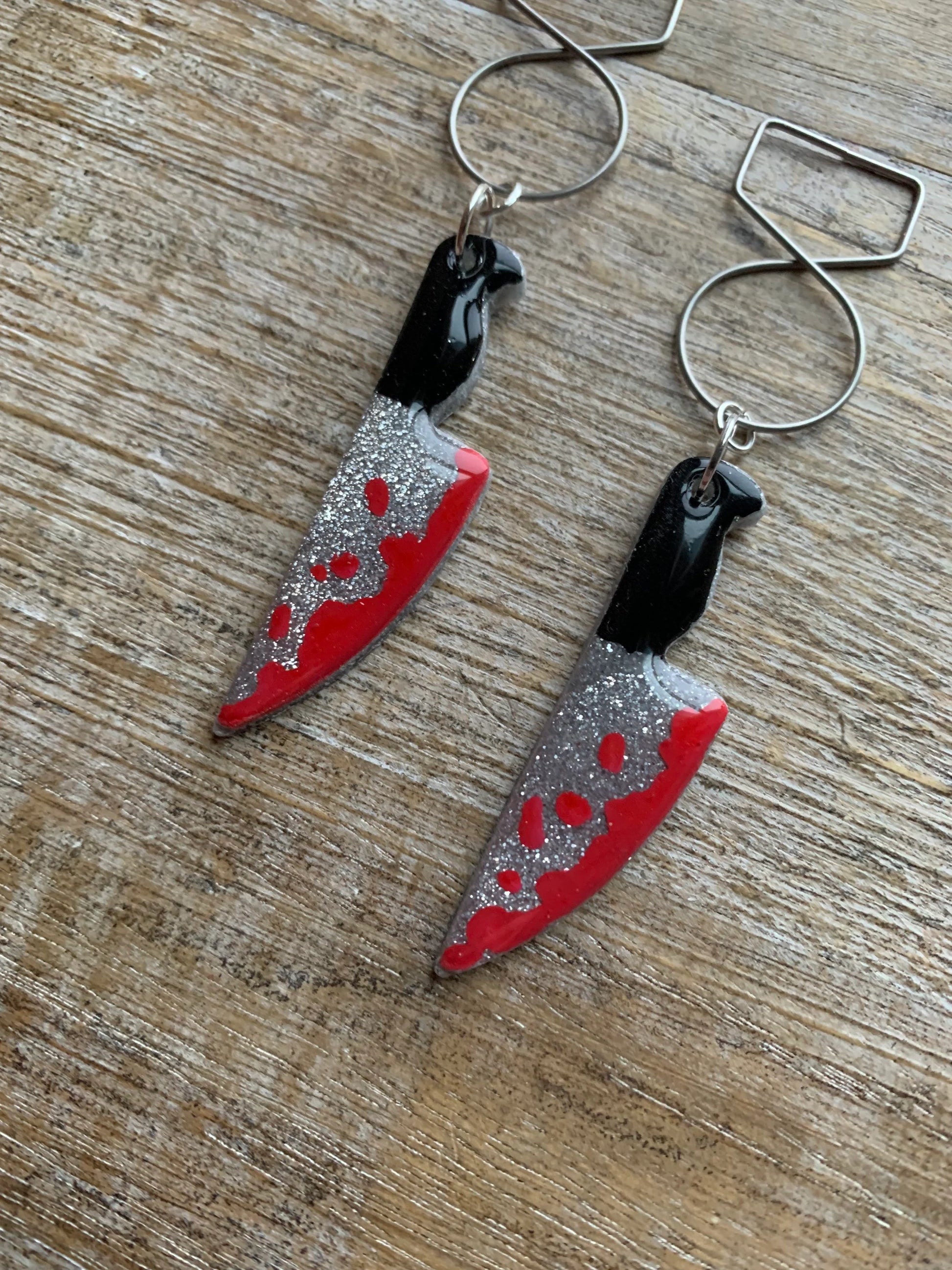 Knife Tunnel Gauge Earrings Halloween Ghost Bloody Knife Clay Ear Weights Killer Murder True Crime Ear Hangers Fall Jewelry Clip On Earrings