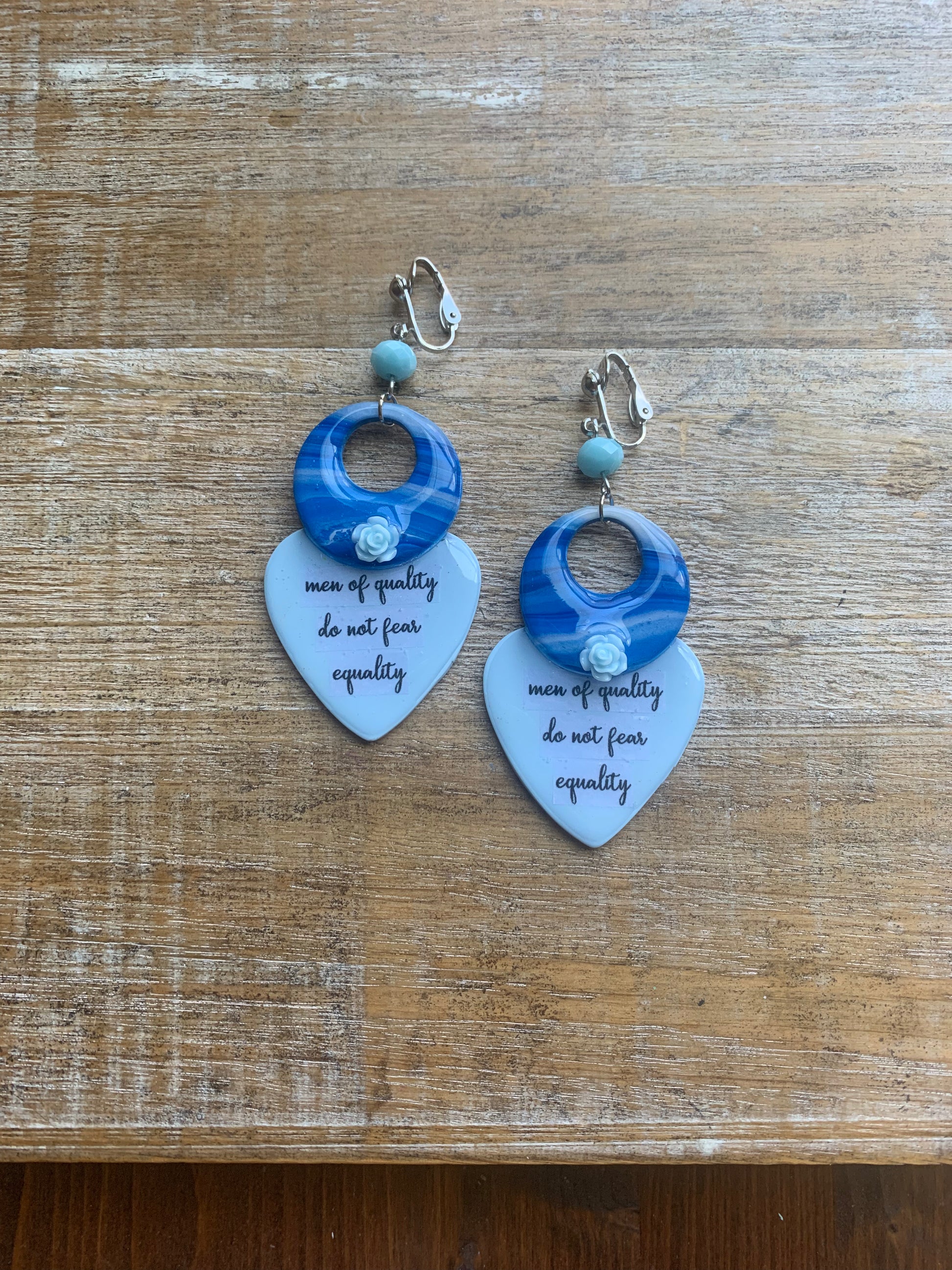 Men of Quality Do Not Fear Equality Clay Clip On Earrings Blue Tunnel Gauge Earrings Light Blue