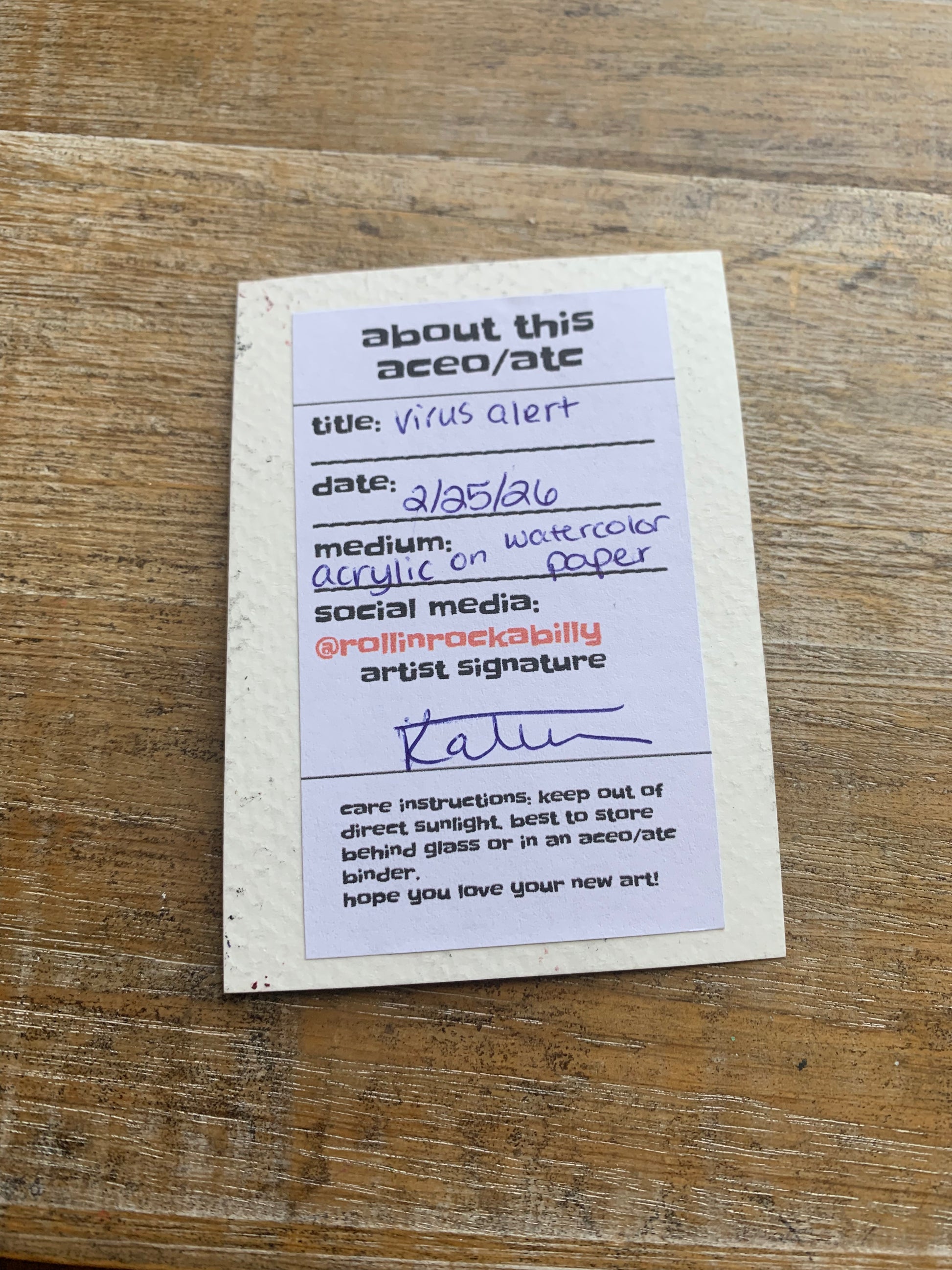 Hand-painted 2.5x3.5 inch ACEO.