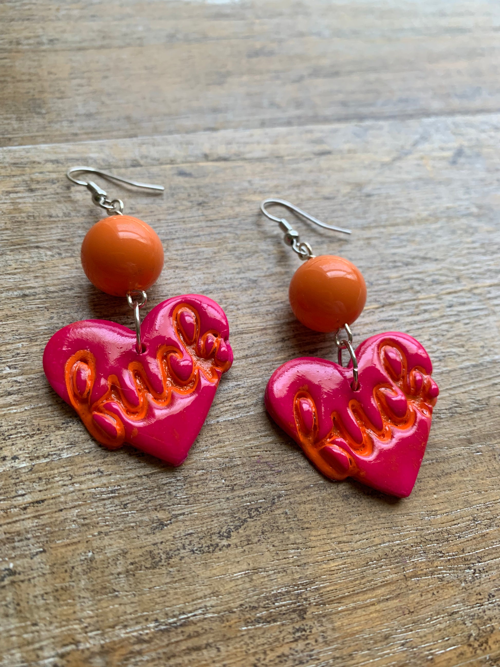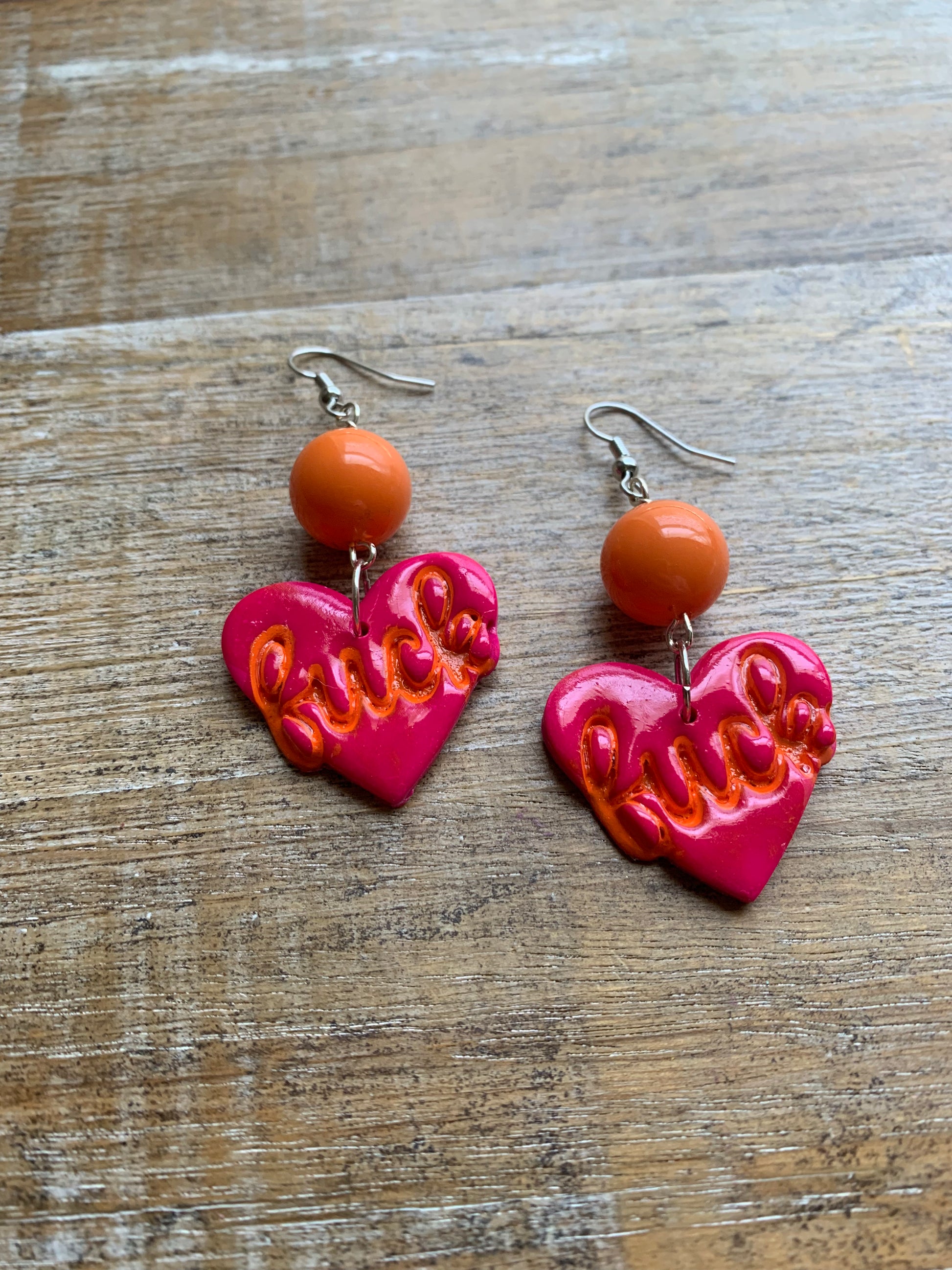 Handmade fuck heart earrings! Made with polymer clay, paint and acrylic beads.