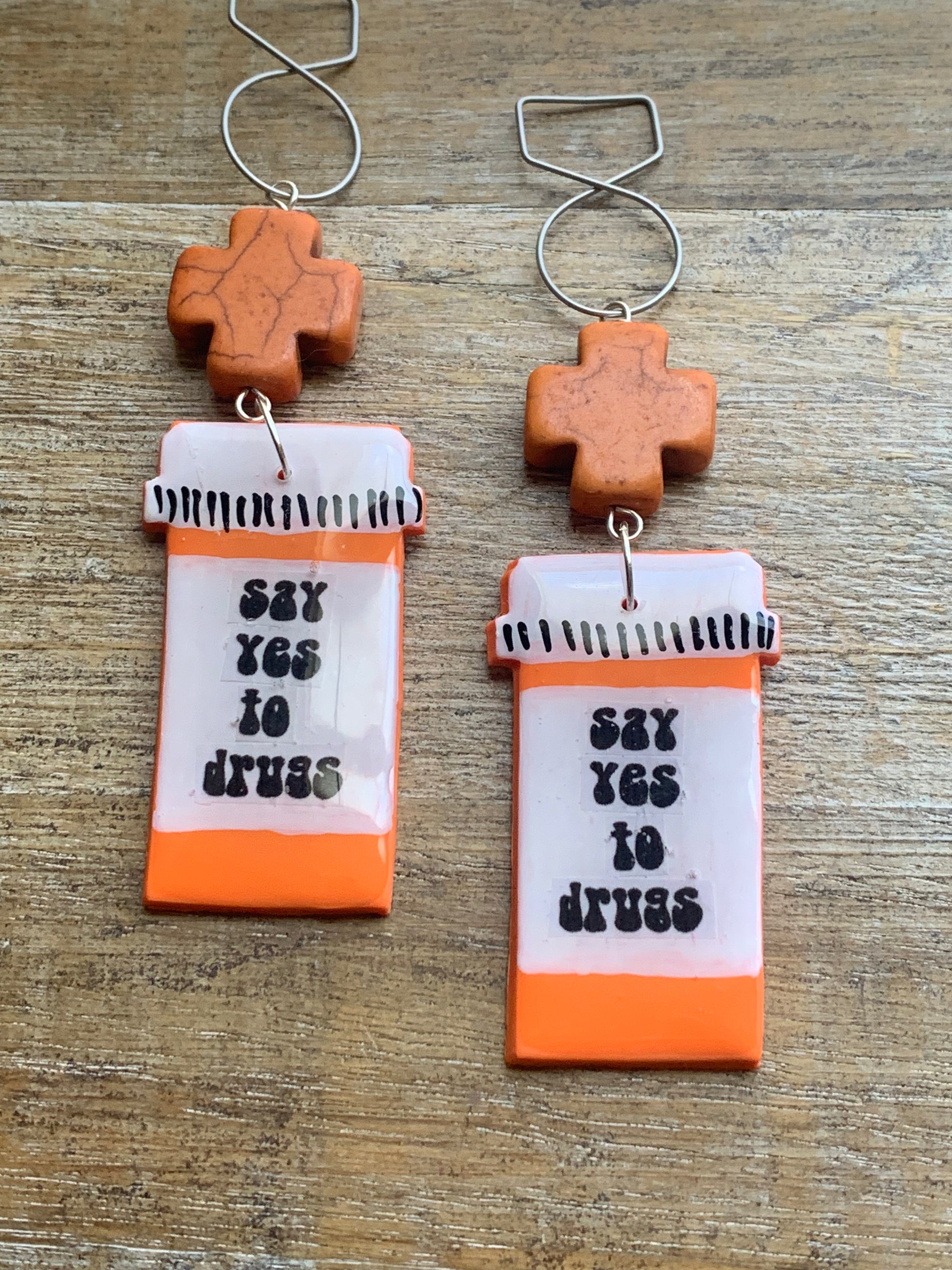 “Say yes to drugs” RX Bottle earrings!