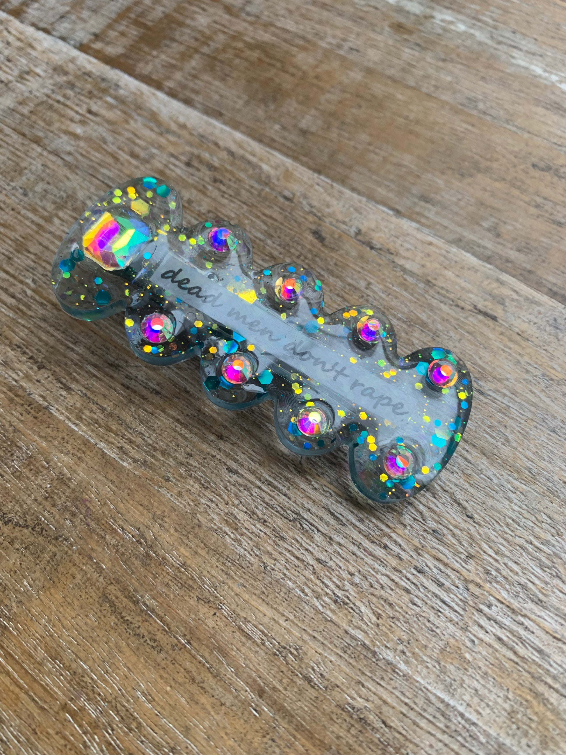 Dead Men Don’t Rape Resin Hair Clip Rhinestone Feminist Glitter Hair Accessory